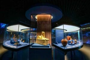 Parmi les pièces maîtresses figurent des statues monumentales, des sarcophages finement décorés, des bijoux et des objets du quotidien.
