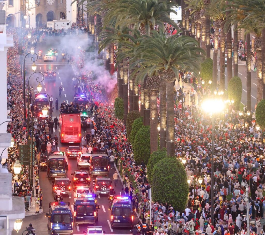 Sur le toit du bus, les joueurs, médailles au cou, saluaient la foule en brandissant fièrement l’étendard national. Les visages illuminés de joie et les yeux humides d’émotion témoignaient de la portée historique de ce titre mondial, le premier jamais remporté par une sélection marocaine dans une Coupe du Monde de football.