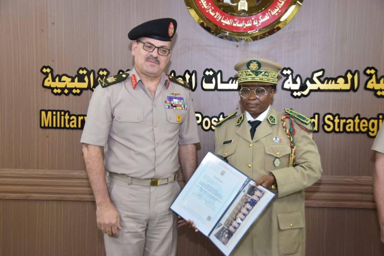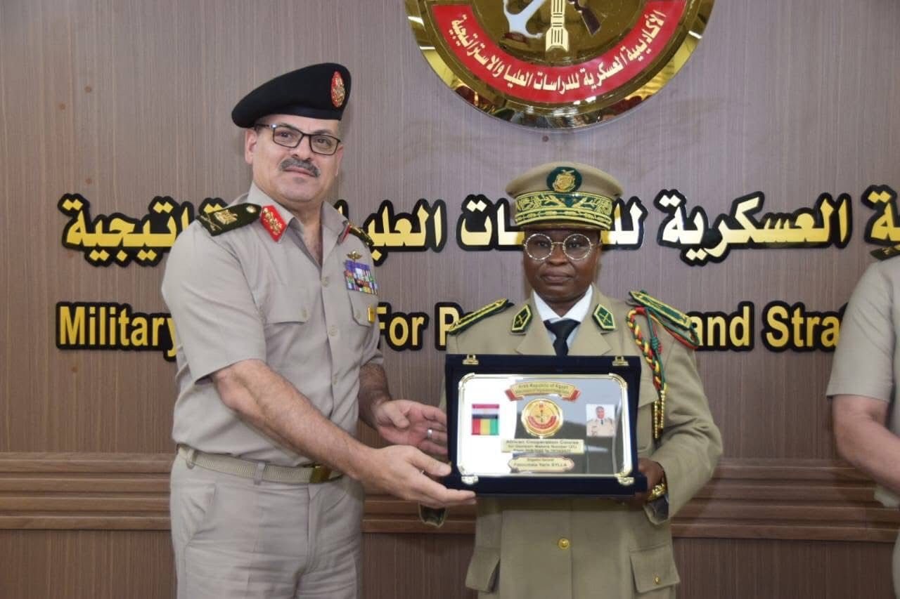 L’Ambassade de la République de Guinée en République Arabe d’Égypte adresse ses chaleureuses et sincères félicitations au 𝐆𝐞𝐧𝐞𝐫𝐚𝐥 𝐅𝐚𝐭𝐨𝐮𝐦𝐚𝐭𝐚 𝐘𝐚𝐫𝐢𝐞 𝐒𝐲𝐥𝐥𝐚, Directrice Générale des Pensions Militaires et Anciens Combattants, ainsi qu’au 𝐂𝐨𝐥𝐨𝐧𝐞𝐥 𝐈𝐛𝐫𝐚𝐡𝐢𝐦𝐚 𝐁𝐚𝐧𝐠𝐨𝐮𝐫𝐚, Directeur Général des Écoles Militaires de Manéah, pour avoir brillamment achevé le Cours de Coopération Africaine pour les Décideurs, organisé par l’Académie Militaire d’Études Supérieures et Stratégiques d’Égypte.
