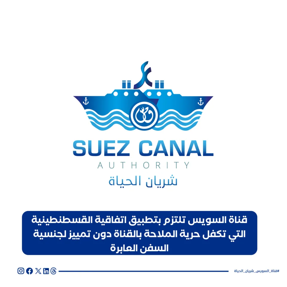 Dans son communiqué, l’Autorité du Canal du Suez a expliqué que les articles de la convention de Constantinople, signés en 1888 après J.-C., ont défini les critères fondamentaux des relations internationales du Canal de Suez. Ces critères préservent le droit de tous les pays de bénéficier de cette installation mondiale, en stipulant dans son premier article que « le Canal de Suez sera toujours maritime, libre et ouvert, soit en temps de guerre, soit en temps de paix, à tout navire de commerce ou militaire, sans distinction de nationalité ».