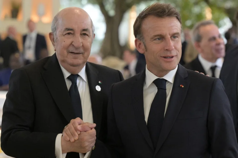 Emmanuel Macron et Abdelmadjid Tebboune, le 14 juin 2014, au sommet du G7 à Borgo Egnazia en Italie © Tiziana FABI / AFP